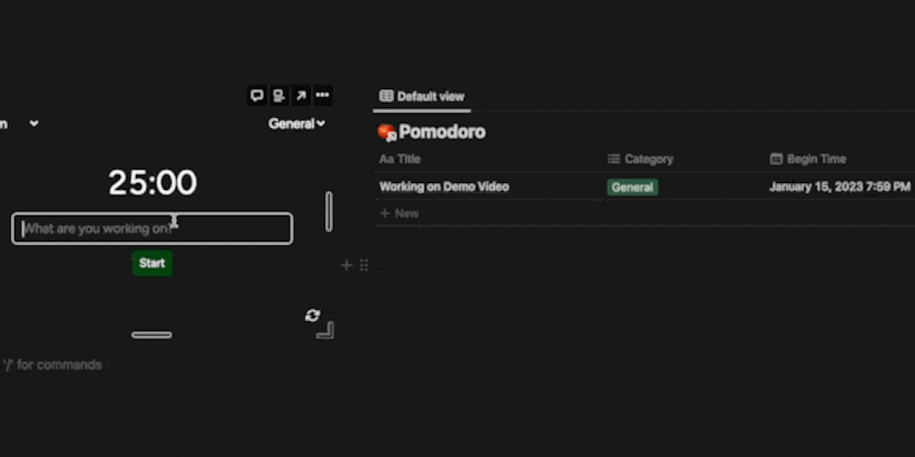 Say goodbye to manually tracking your pomodoro sessions and saving data in Notion apps. This pomodoro widget automatically saves all your data directly inside your Notion database.