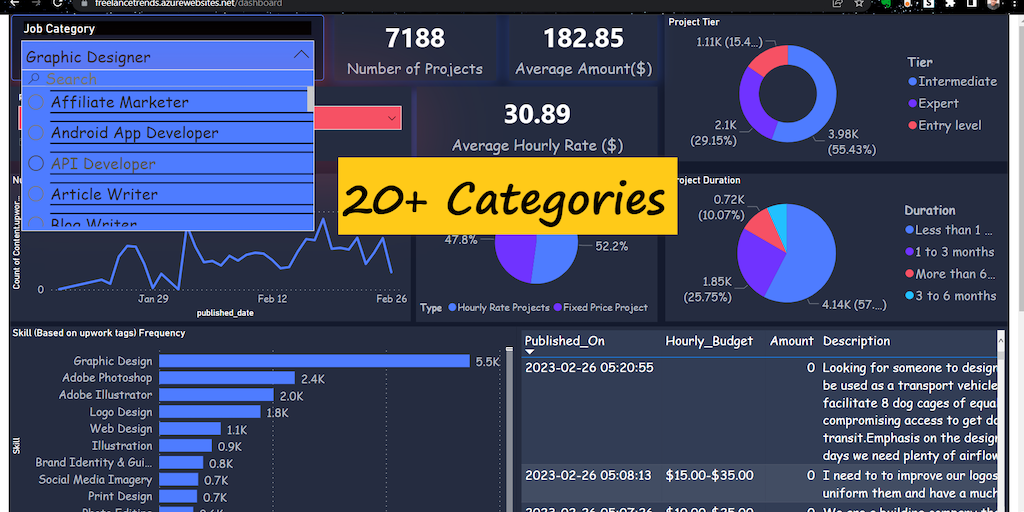 Ultimate tool for freelancers. With daily analysis of 20+ categories, customizable time-based analysis & valuable insights, you can easily discover opportunities & gain a statistical overview of the m