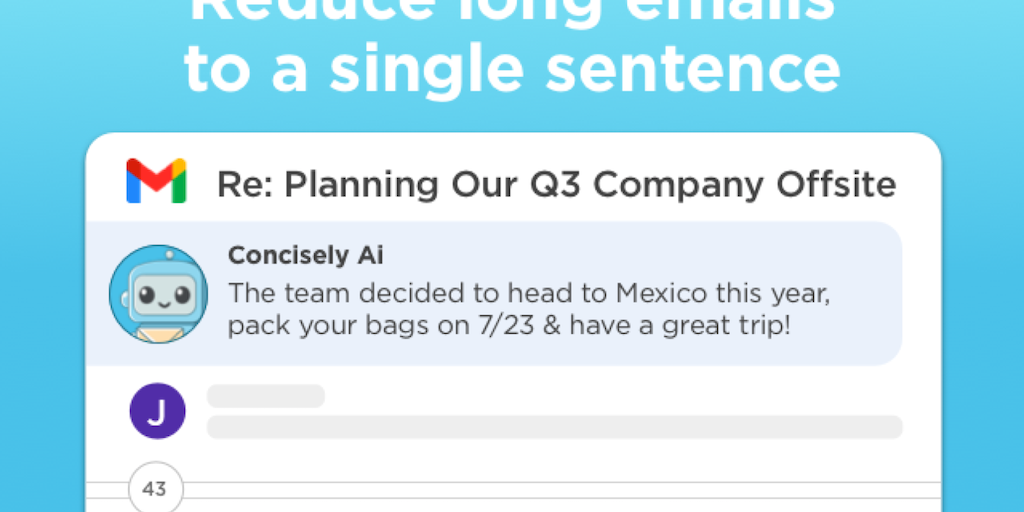 Simplify your Gmail inbox with Concisely, a FREE Chrome extension that uses ChatGPT to summarize long email threads and newsletters. Blaze through any email in a single, concise sentence. Concisely is