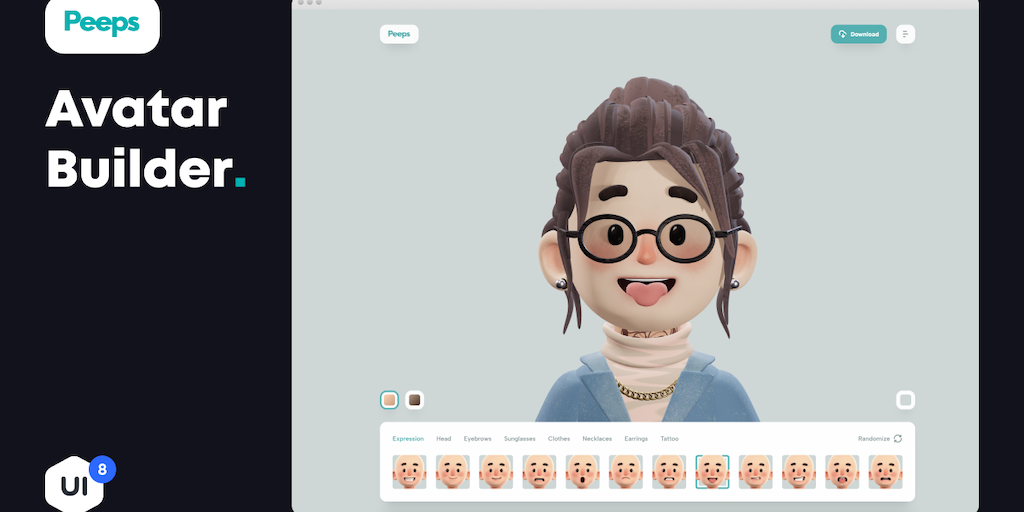 Peeps is an interactive 3D avatar maker. This initial version of our builder is 100% free to use for personal and commercial projects. You can use Peeps in your social profiles, social media posts, de