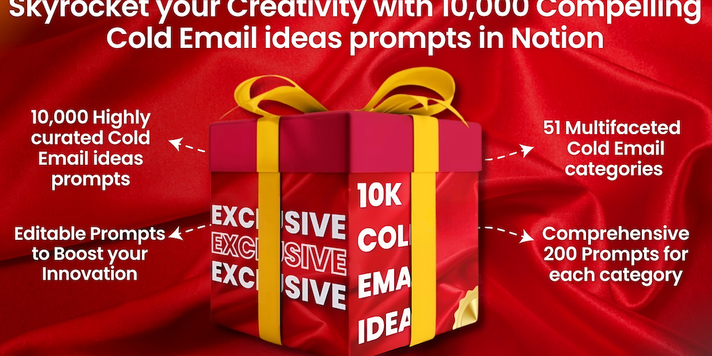 The Ultimate Collection of 10,000 Cold Email Idea Prompts Bundle is here to help you boost your creativity for crafting compelling cold emails that inspire action and drive results.