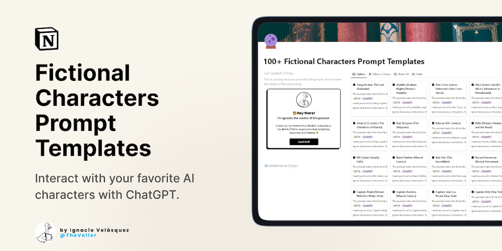 100+ Fictional Characters Prompt Templates is an innovative collection that empowers ChatGPT to embody the characters you love, fostering immersive and engaging interactions that rival even the most s
