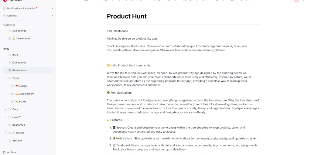 Rootspace - Open source productivity SaaS app | Product Hunt