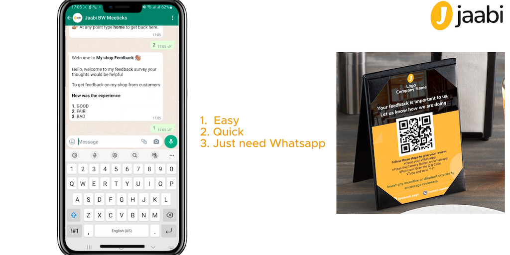 Jaabi is like Google Forms over Whatsapp, allowing anybody to complete a form. Market Research, Customer Feedback, Event Registration, etc People in developing nations mostly use WhatsApp data bundles