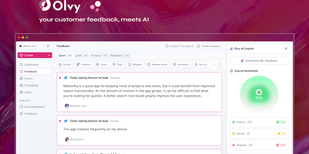 Olvy 2.0 - Analyze user feedback 10x faster with Olvy AI | Product Hunt