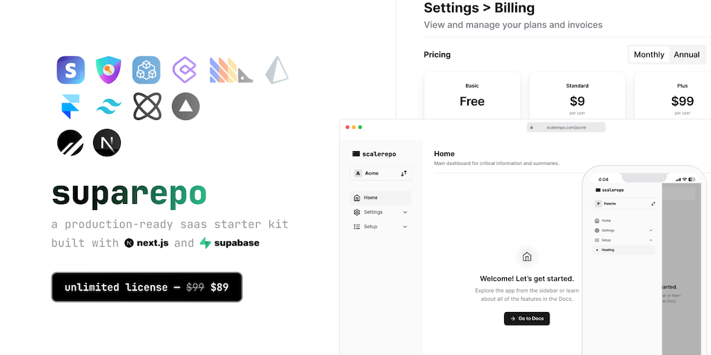 Suparepo is a production-ready SaaS starter kit built with Next.js App Router and Supabase.