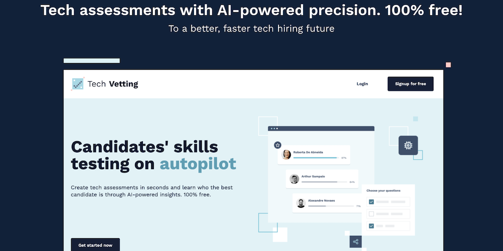 Tech Vetting - Candidates' skills testing on autopilot | Product Hunt