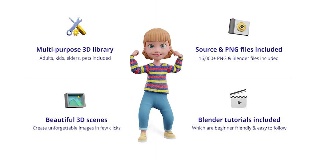 ILLUSTRATIONZ is a premium 3D character illustrations library with millions of possible combinations. Mix & match, easy to use, 1,600+ PNG files, source files, diverse and compatible with any design t
