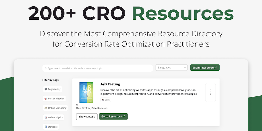 Discover the Most Comprehensive Resource Directory for CRO Practitioners. Gain Valuable Insights from the Widest Range of CRO Content - Save Time and Unlock Your Potential with Our Platform.