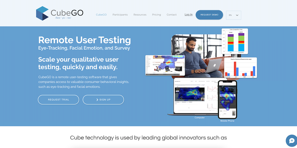 CubeGO is a remote user-testing software that gives companies access to valuable consumer behavioral insights, such as eye-tracking and facial emotions.