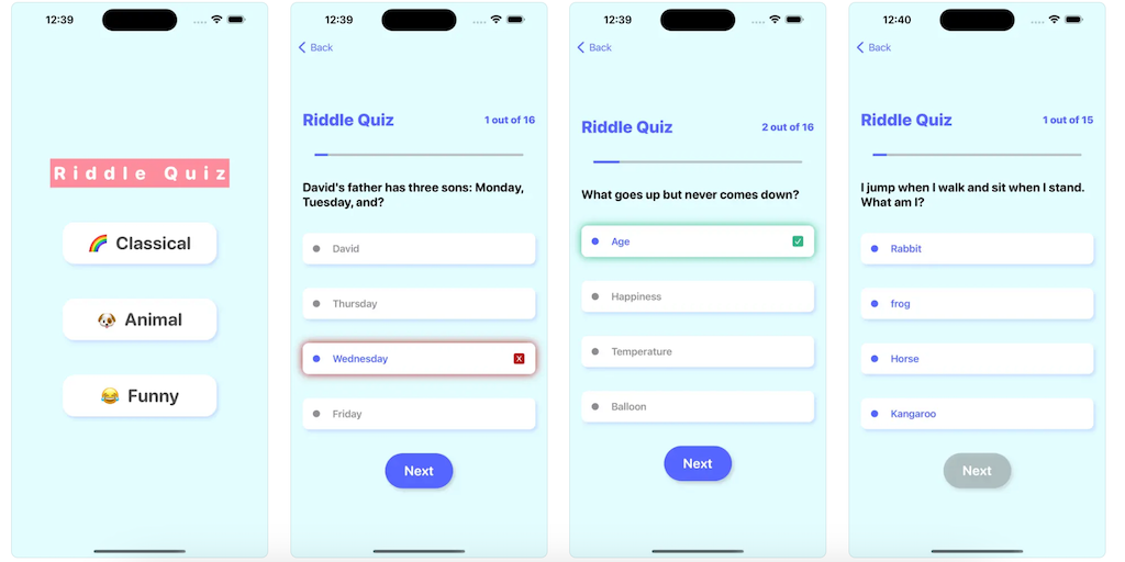 Riddle Quiz is a game of riddles and trivia that will test your logic, creativity, and knowledge. You will have to answer different types of riddles from different categories, such as animals, classic