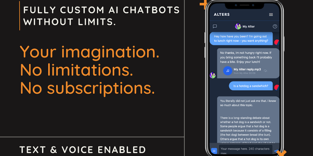 ALTERS is where your imagination and personality can be perfectly captured and replicated using the latest AI technology. Monetize your creations, automate your fan interactions, and much more.