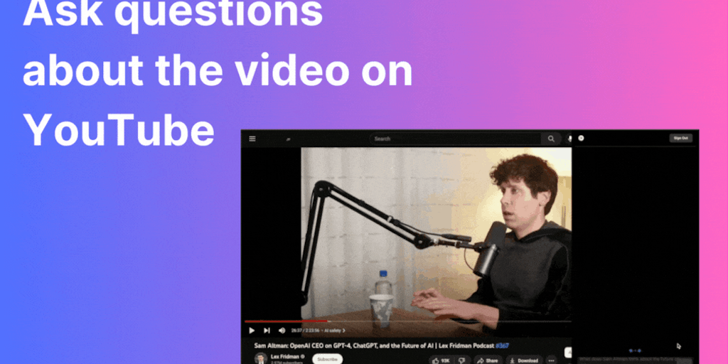 Ask questions directly to the chatbot while watching videos on YouTube. With Audio2Doc's chrome extension, you can ask the chatbot questions about the video you are watching and get instant answers wi