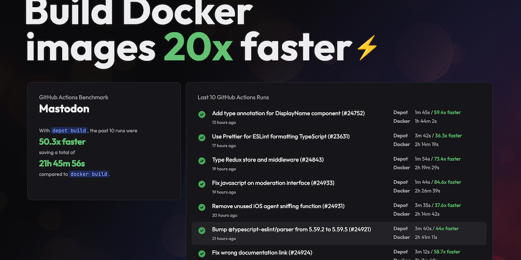 Depot - Build Docker containers up to 20x faster | Product Hunt