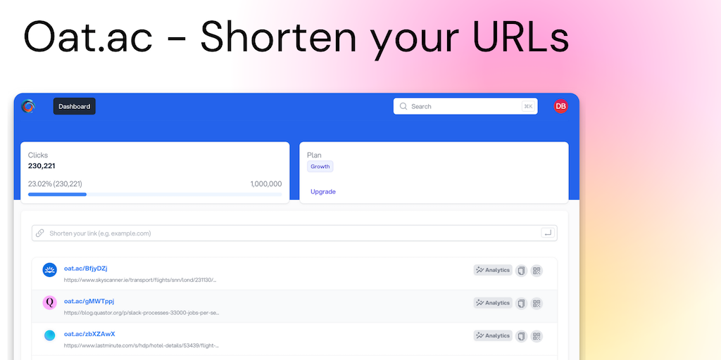 Oat.ac - URL Shortener - Fast URL Shortener with Analytics & Developer API | Product Hunt