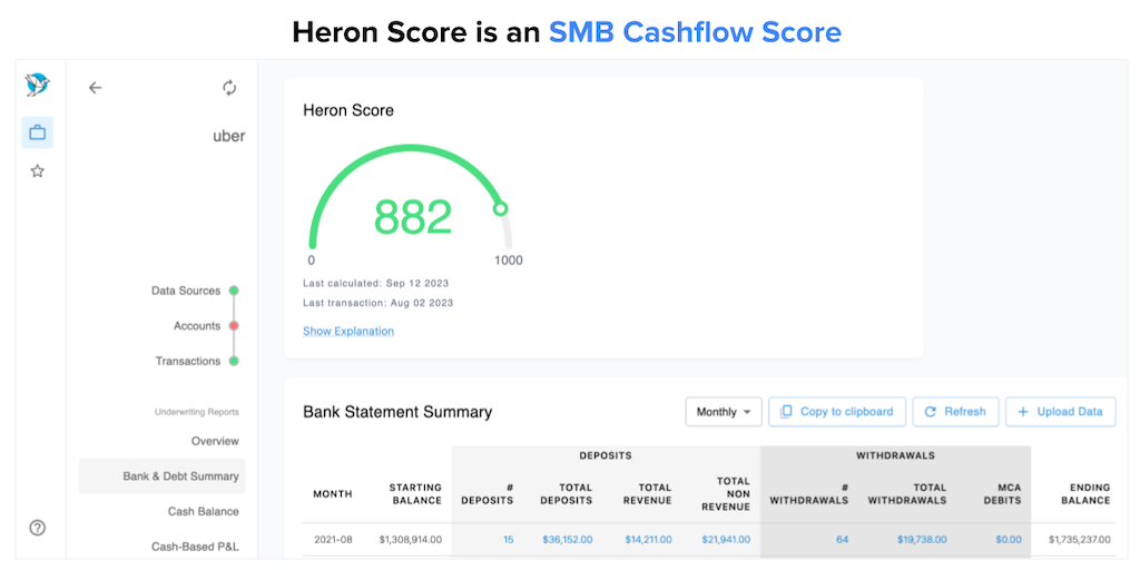 Heron Data: Cashflow scoring for SMBs - Predict business credit risk using bank data | Product Hunt