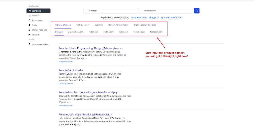 Discover promoting channels for any product in seconds, gain inspiration for growing your own product. With PromoteHunter you will have deeper insights into production promotion and SEO.