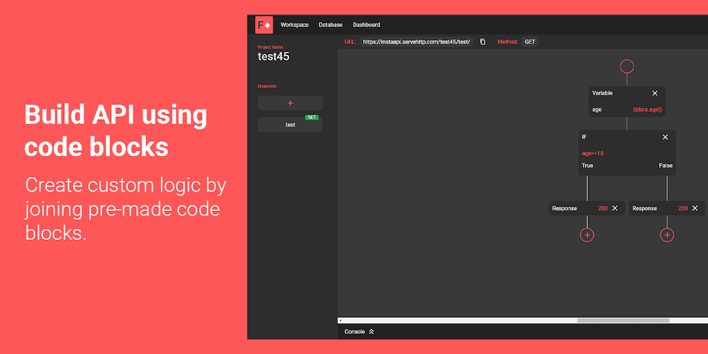 Fabloq lets you build and deploy REST APIs quickly. With the simple flowchart-like interface, you can quickly create custom logic for API endpoints. It also comes with a built-in database which you ca
