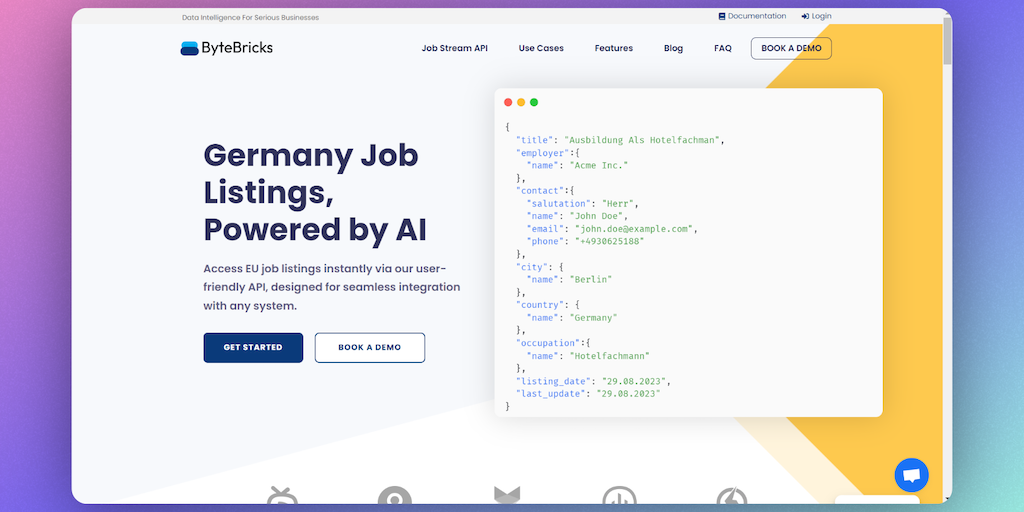 ByteBricks - Germany Job Listings API, Powered By AI! | Product Hunt