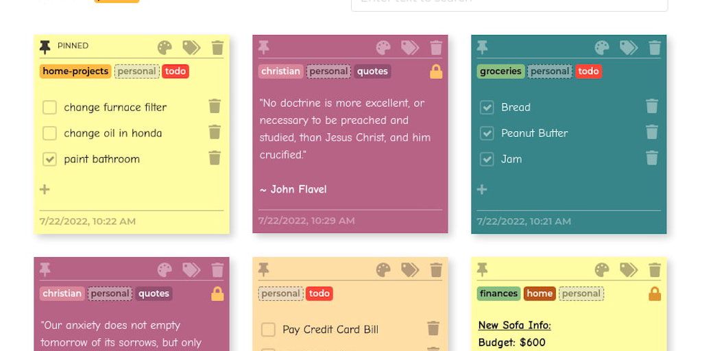 Use NoteTrac.io to create and manage notes that only you can see. Your password is the key that unlocks your data and your privacy is our top priority. Go premium to enjoy checklist notes, note tags,