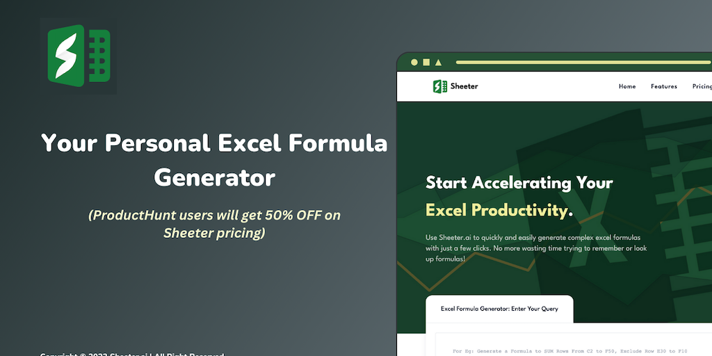 Sheeter.ai - Your Personal Excel Formula Generator | Product Hunt