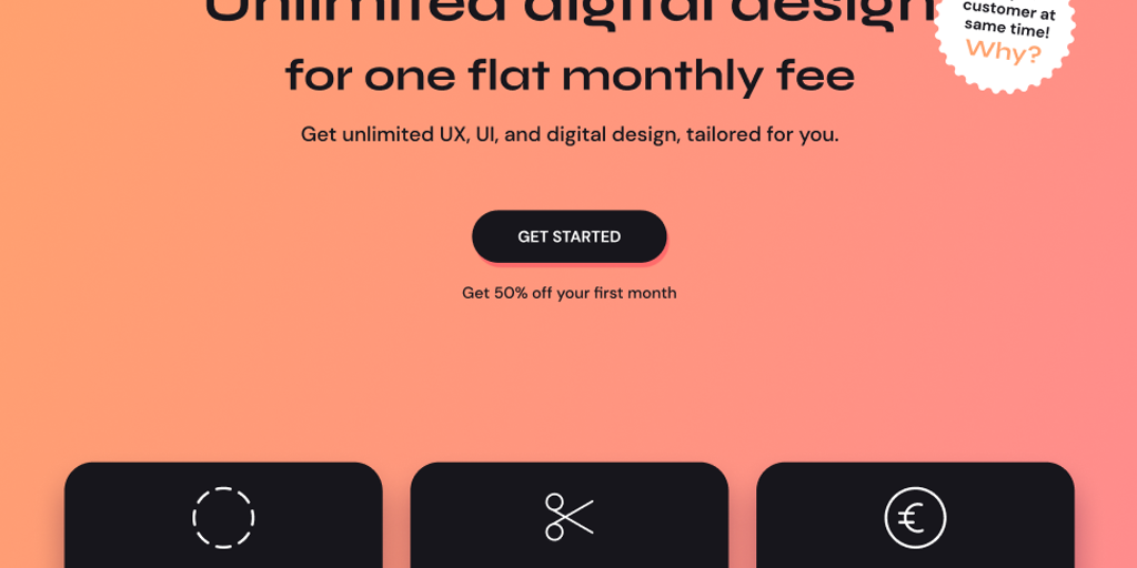 Unlimited digital design, for one flat monthly fee! UX, UI, and digital design, tailored for you. - websites - mobile apps - webapps - landing pages - sitemaps - wireframe - prototyping - webflow Woul