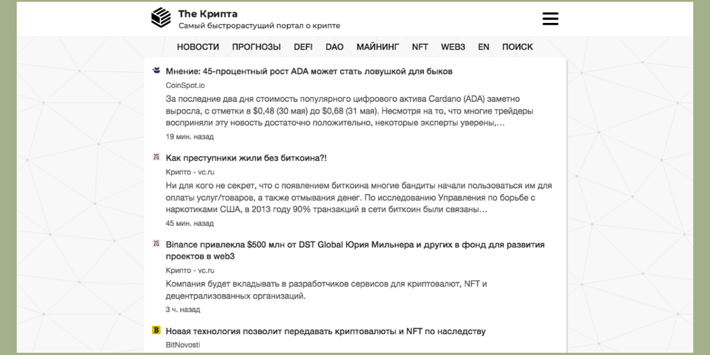 The fastest-growing news portal about cryptocurrencies in Cyrillic - Crypto news in Cyrillic - Top 100 cryptocurrencies - Useful tools