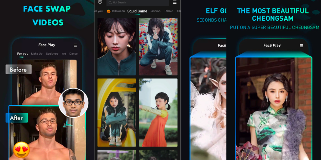 When you open faceplay, you will see a variety of video face changing short video templates. No matter which video you like, you can make it with one click, just one photo, so that you can become the