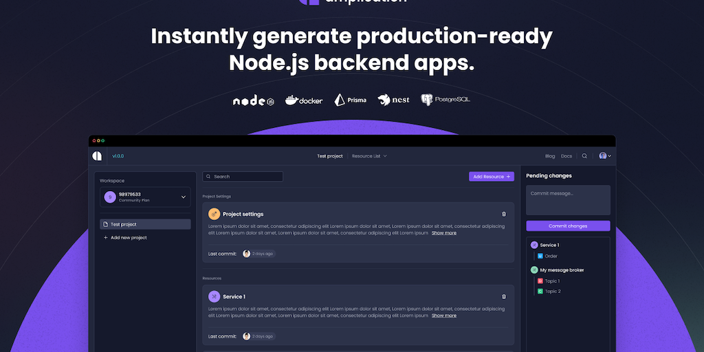 Amplication 1.0 - Instantly generate enterprise-grade Node.js applications | Product Hunt