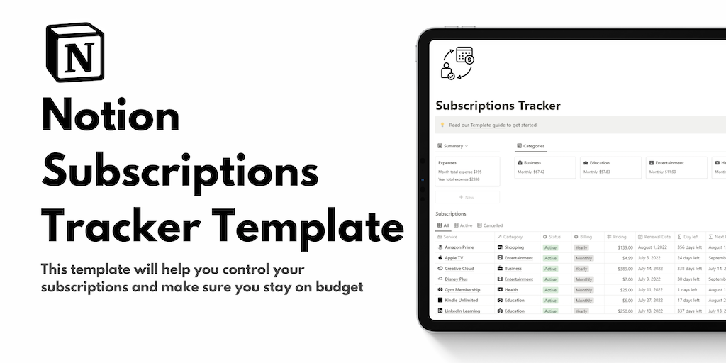 Notion Subscriptions Tracker Template - This template will help you control your subscriptions | Product Hunt