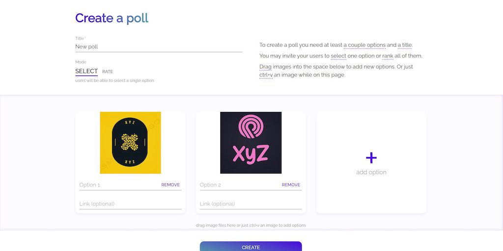 TinyGiny helps you select the right visuals based on votes from your colleagues or customers. You create a poll, upload the assets, decide whether you want users to rate every option or pick just one