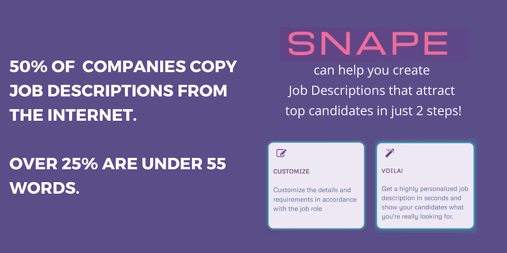 Say goodbye to the hassle of copying job descriptions from the internet. Snape generates unique, custom job descriptions in seconds. No more settling for subpar descriptions that are shorter than a tw