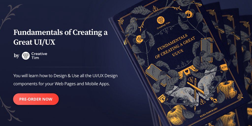 "Fundamentals of Creating a Great UI/UX" by Creative Tim will show you how to Design & Use all the UI/UX design components for your Web Pages & Mobile Apps. 🌟 It is based on Creative Tim's 8 years of