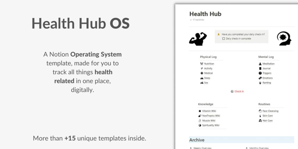 A full health operating system with +15 unique templates and +10 different trackers to help you track everything health related in one connected hub.