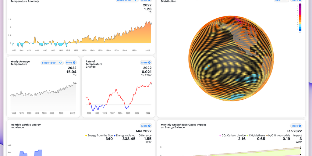 Try it out, get the latest metrics and facts on climate change. Latest temperature anomaly? How fast the global temperature changes? Latest human greenhouse gas emissions? How the temperature anomaly