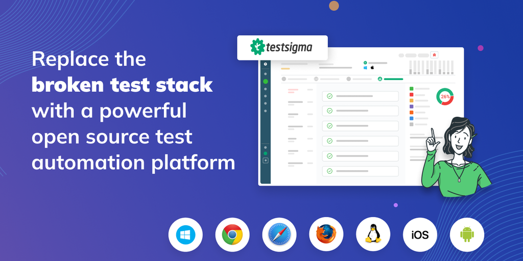 Testsigma is a no-code, open source test automation platform. Create tests in minutes for web apps, mobile apps & APIs. ⏱️ No setup required 🏃 Create tests 5X faster in plain English 🔧 Zero maintenanc