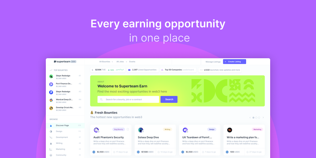 Superteam Earn - Discover Web3 bounties, grants, and jobs in one place | Product Hunt