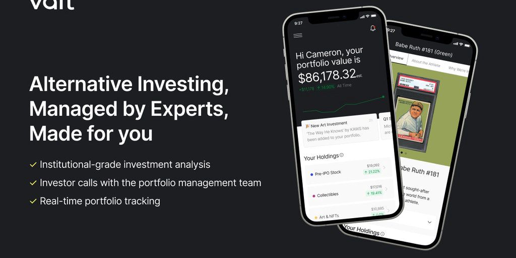 VALT is the first investing app that unlocks diversified portfolios of world-class alternative assets for retail investors. Brought to you by Indiegogo co-founders and powered by Vincent, the largest