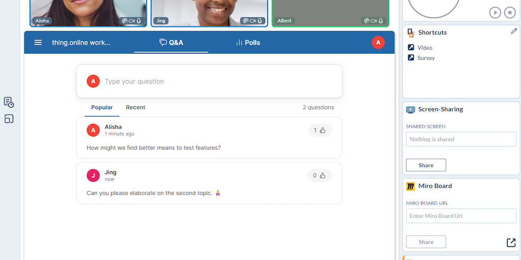 thing.online enables organizations and teams to run effortless virtual workshops, achieving high-quality results in structured conversations.