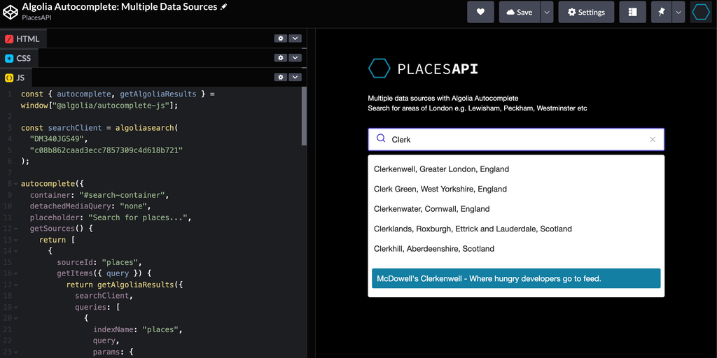 PlacesAPI is a UK (and Republic of Ireland) geocoding service, built on Algolia, that provides a fast and easy way to add location search autocomplete to your websites and apps. Migrating from Algolia