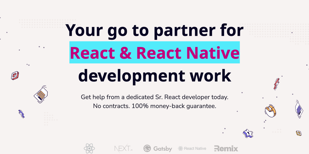 Smart & fast way to get your React.js and React Native work done. Get help from a dedicated Sr. React developer. No contracts. 100% money-back guarantee.