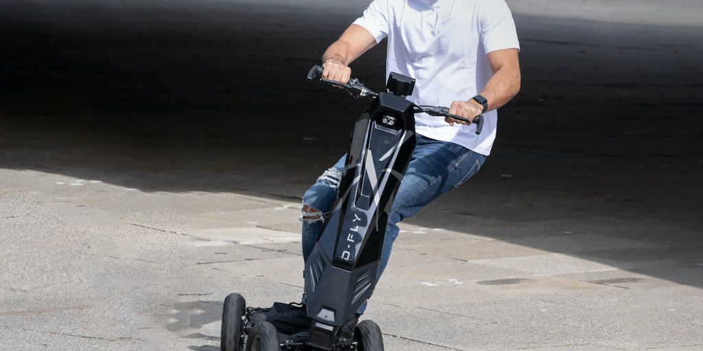 Dragonfly Hyperscooter is the world's first hyperscooter. It has a patented 3D Full-Tilt steering system and a wide 4-wheel carbon fiber platform that offer the rider stability, safety, and maneuverab