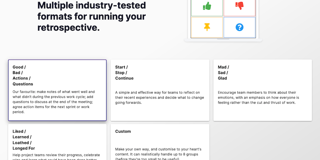 RemoteRetro - Make running retrospective meetings with a remote team easy | Product Hunt