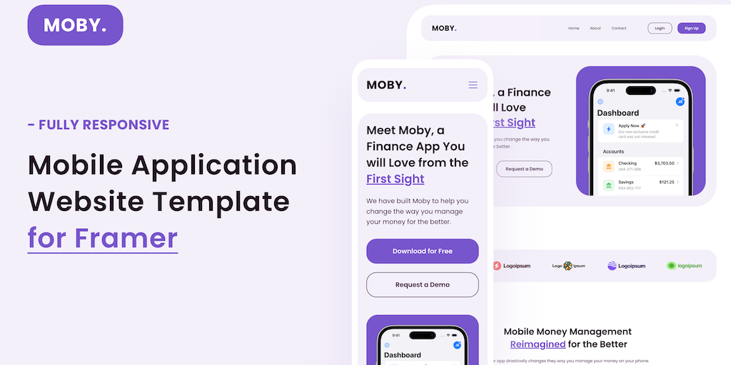Moby - Mobile application website template for Framer Sites | Product Hunt