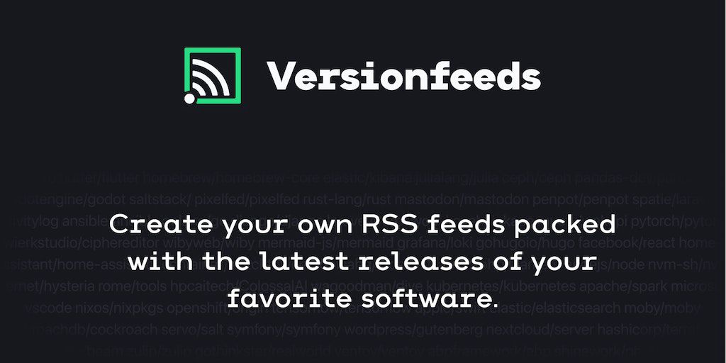With Versionfeeds, you can create your own RSS feeds and add the software you love and need to it. Versionfeeds will then fetch all releases of the software and make them available in the RSS feed. So