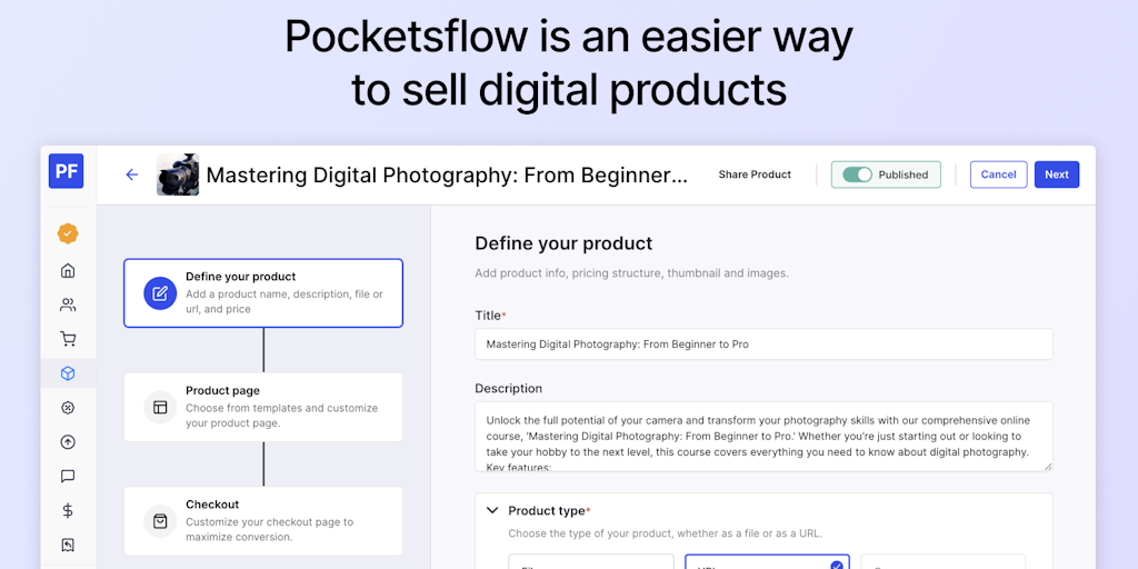 Pocketsflow - A simple to use platform to sell digital products online | Product Hunt