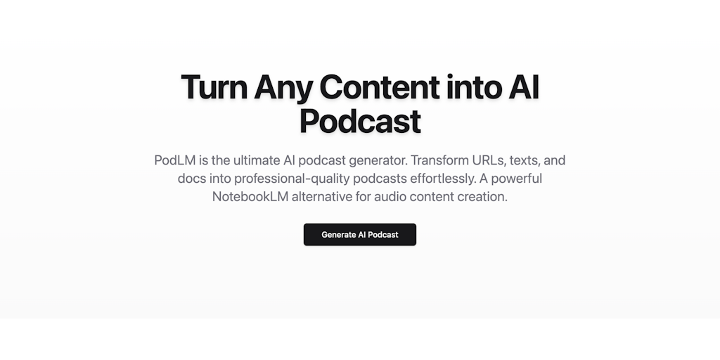 PodLM is the ultimate AI podcast generator. Transform URLs, texts, and docs into professional-quality podcasts effortlessly. A powerful NotebookLM alternative for audio content creation.