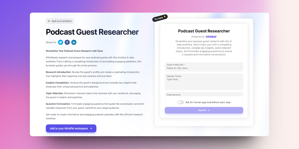 Introducing PodPrep, your podcast genie! Let PodPrep streamline your guest research process, from crafting captivating introductions to formulating engaging questions, making every episode a storytell