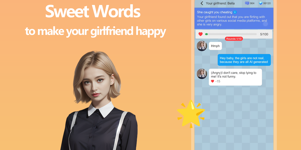 Your AI girlfriend is upset for some reason—can you sway her back in just 10 conversations? Plus, there are a multitude of relationship crises awaiting your resolution. It might be challenging, but gi