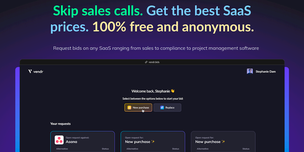 Vendr Bids - Get bids on any SaaS in 24 hours — 100% free and anonymous | Product Hunt